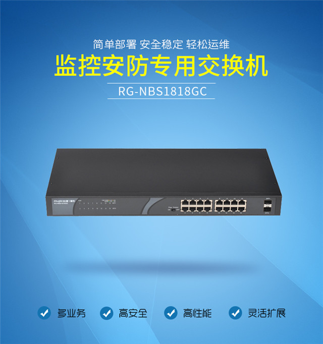 銳捷RG-NBS1818GC千兆16口監(jiān)控交換機機架式企業(yè)網(wǎng)絡二層交換機