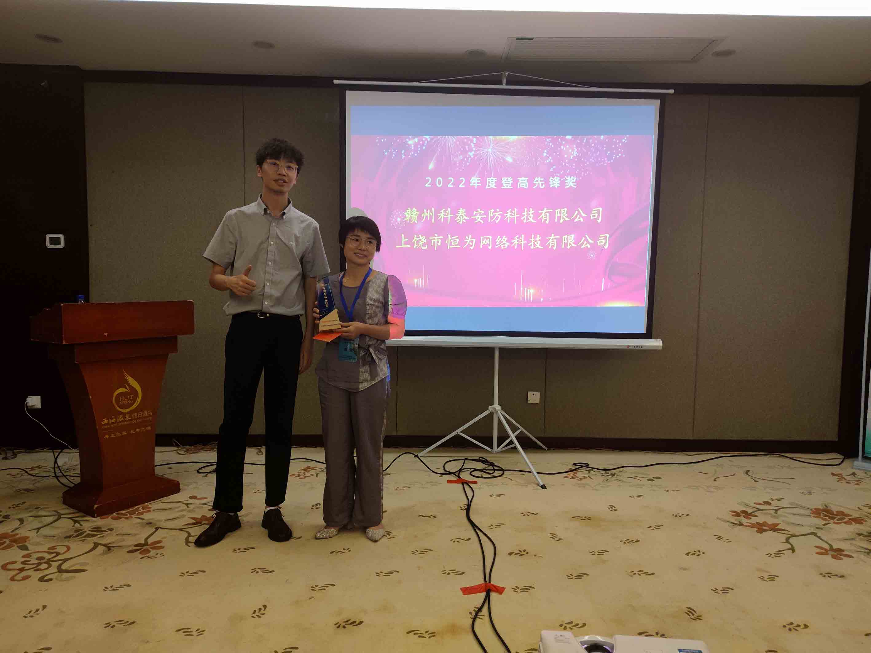 會(huì)上、上饒市恒為網(wǎng)絡(luò)科技有限公司和贛州科泰安防科技有限公司獲“2022年度登高先鋒獎(jiǎng)”