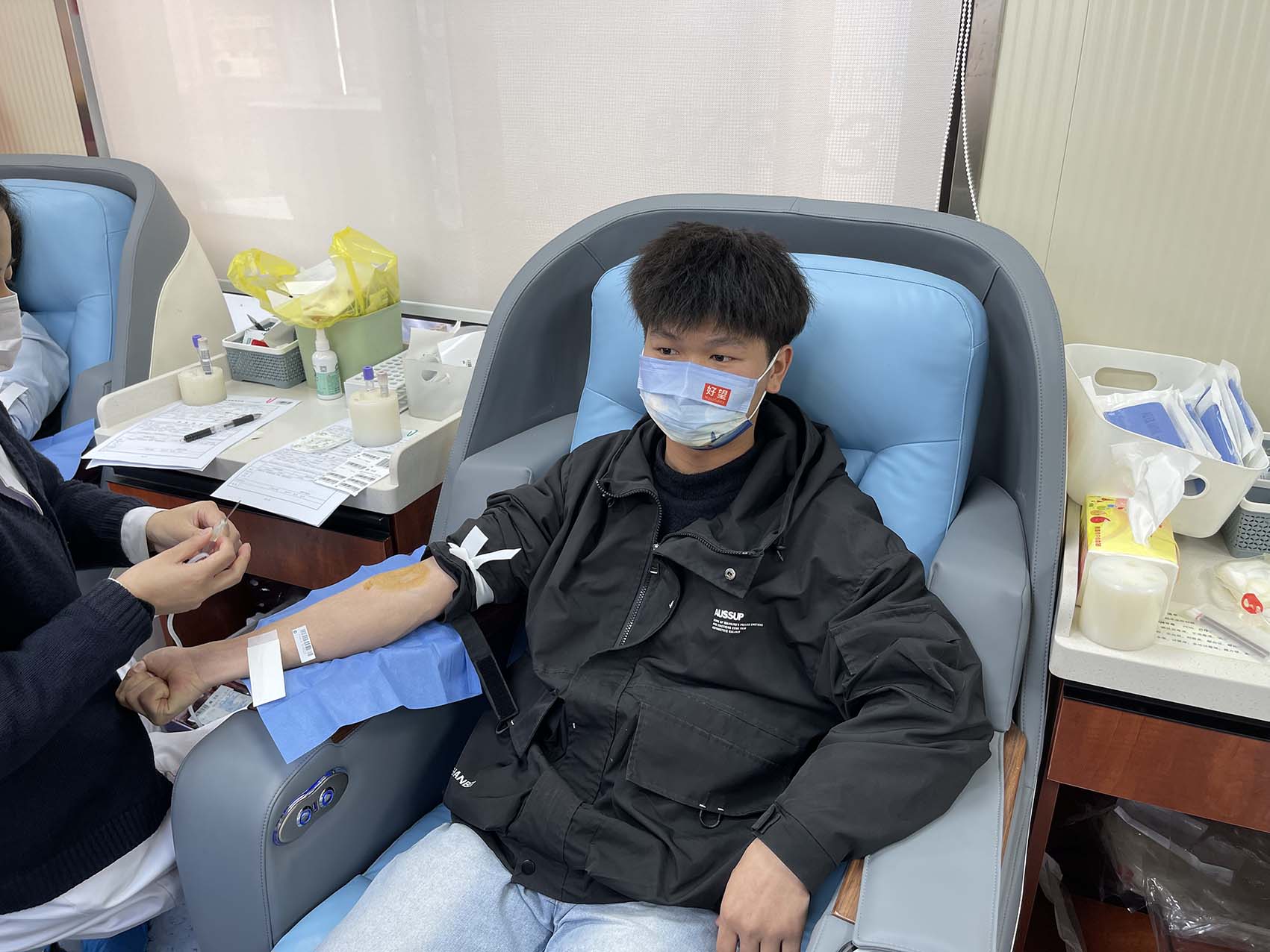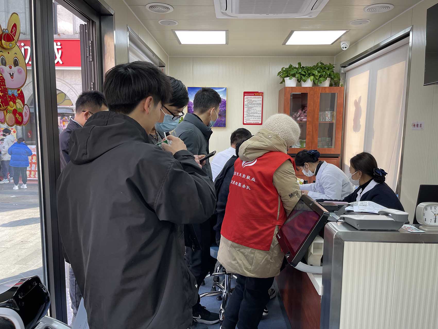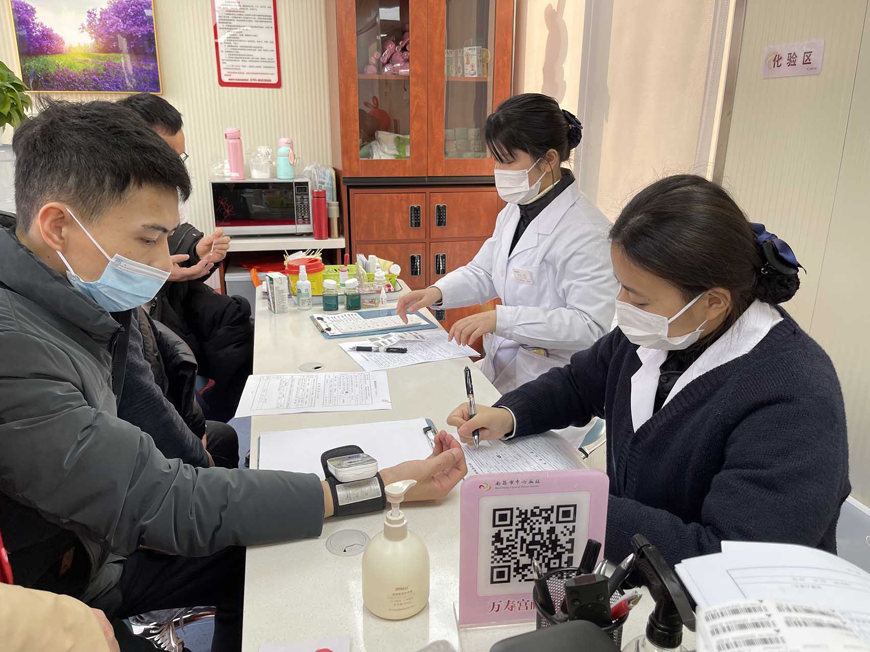 大家認(rèn)真掃碼填寫(xiě)獻(xiàn)血登記表、測(cè)量血壓、初篩、獻(xiàn)血、領(lǐng)證,有條不紊、秩序井然。