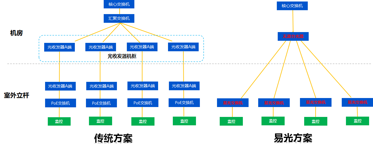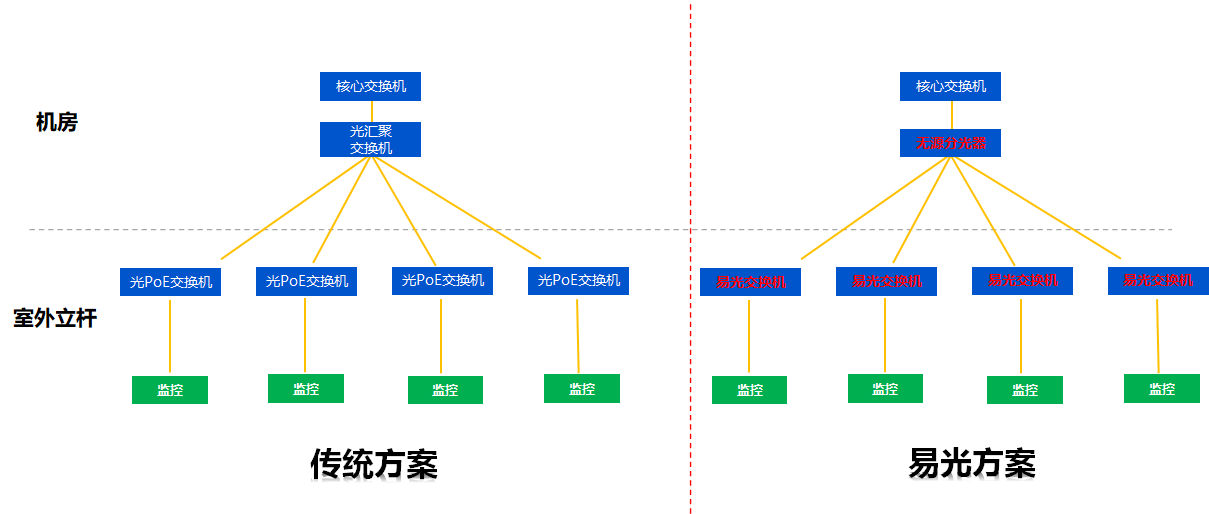 2、相比光纖收發(fā)器方案,故障節(jié)點減少60%以上,大幅降低維護成本