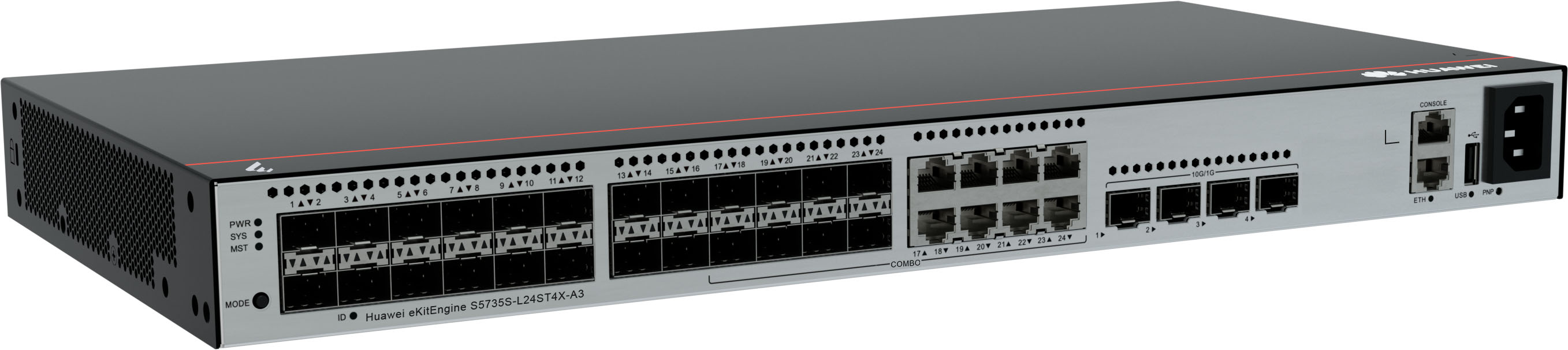 固定端口 24個千兆SFP端口,其中8個復(fù)用的千兆10/100/1000Base-T以太網(wǎng)端口Combo,4個萬兆 SFP+